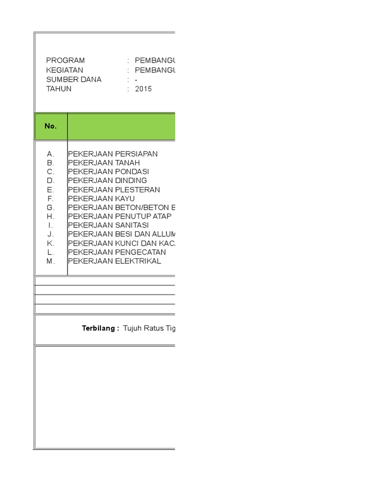 Setelah itu dilanjutkan dengan perhitungan estimasi biaya model dasar rumah dengan analisis sni 2008, pemodelan volume, satuan, item pekerjaan dan harga satuan desain parameter. Misalnya, jika standar biaya bangun rumah tipe 45 di tempat anda. Bahan no uraian pekerjaan vol sat hrg satuan jumlah hrg total i. Maksud dari tipe tersebut adalah rumah dengan ukuran 45 m2 yang biasanya jika dilihat dari jenisnya sudah termasuk ke dalam golongan rumah minimalis ternyata banyak masyarakat yang memilih membeli rumah tipe ini dengan berbagai pertimbangan salah satunya adalah harga yang tidak begitu. Studi ini diawali dengan pengumpulan data model dasar rumah tipe 45, 60 ga, 60 nt dan 70.